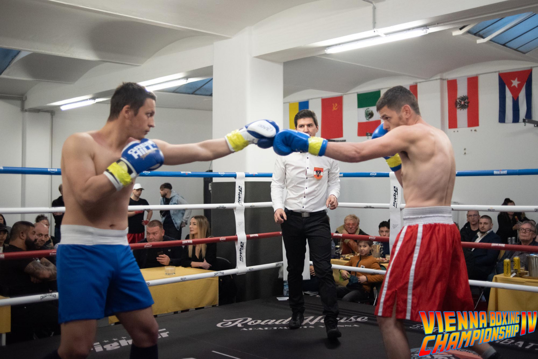 Dieses Mal gab es wieder acht spannende Kämpfe bei der Vienna Boxing Championship. Den Startschuss gaben der serbische Youngster Dusan Dimic und Steven Murgu. Steven legte los wie die Feuerwehr und konnte Dimic gleich zu Beginn mit einer dreifach Haken Kombi zu Boden strecken. Dimic erholte sich gut und konnte Runde zwei und drei für sich holen. Dadurch die logische Konsequenz Unentschieden. Ein toller Erfolg für unseren Steven, der seinen allerersten Kampf bestritt und stolz auf dieses Draw sein kann. Bei den Newcomern konnte Timotheus „the Sniper“ Kaskin sich gegen Steven Marik aus dem T-Fighting Gym und unseren Peter Fichtenbauer durchsetzen. Tim zeigte sich stark verbessert im Vergleich zur letzten VBC und konnte im zweiten Kampf Fichtenbauer, der bis dahin ordentlich boxte, sogar ausknocken.