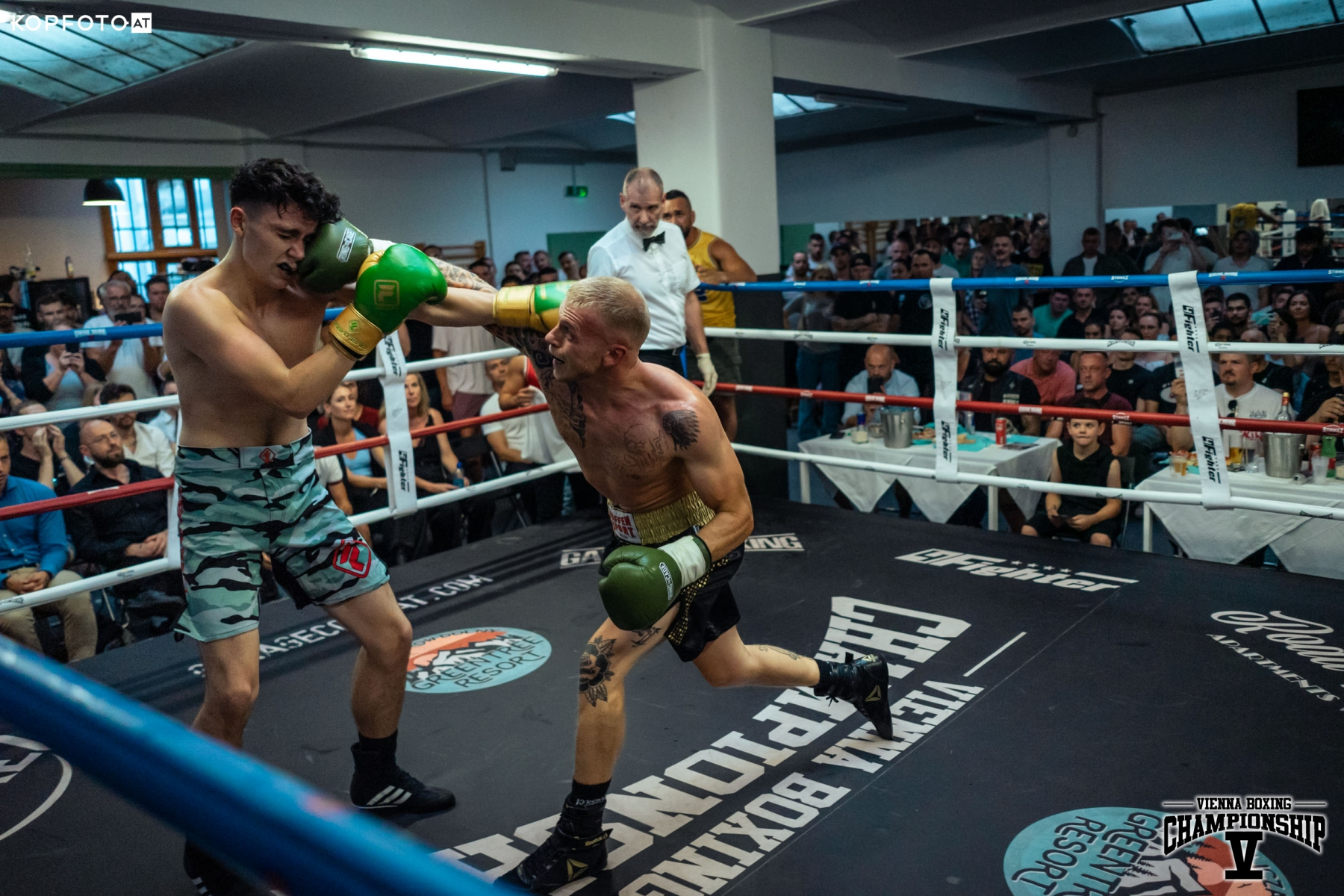 Bei den Pros startete dann Christine Pöppelmayer aus der Boxschmiede Wien gegen Nikolett Szabo. Klare Angelegenheit für die Deutsche, sie gewinnt durch TKO. Im zweiten Frauenkampf des Abends siegt die wunderbare Melina Maibaum. Sie überzeugte durch klasse Übersicht und einen technisch einwandfreien Stil. Sie ließ der Ungarin Andrea Jenei nicht den Hauch einer Chance. Das deutsche Schwergewicht und ehemaliger Bayernmeister der Amateure Tom Manzau, stoppt Filip Dacevac brutal in Runde 2. Tom wird bei der nächsten Championship im September ebenfalls wieder am Start sein.