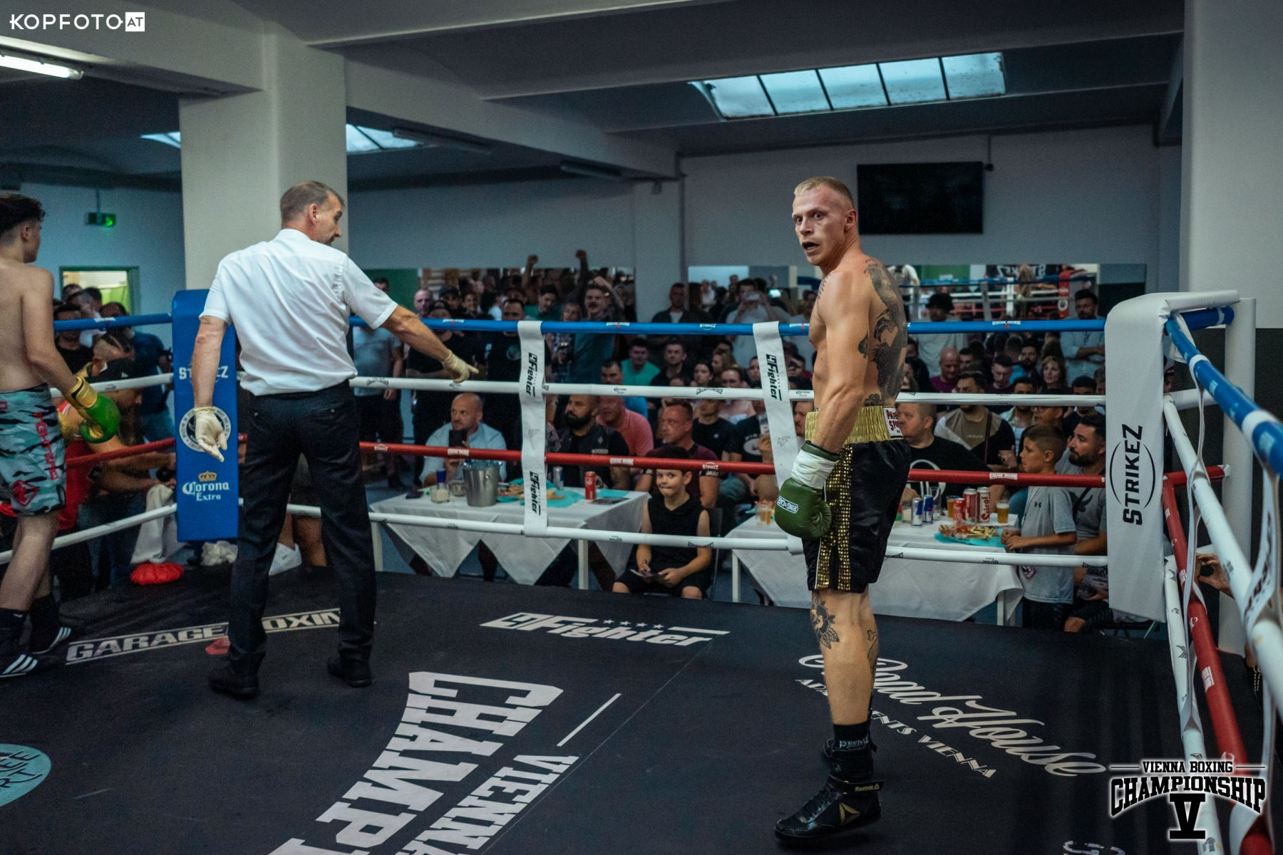 Bei den Pros startete dann Christine Pöppelmayer aus der Boxschmiede Wien gegen Nikolett Szabo. Klare Angelegenheit für die Deutsche, sie gewinnt durch TKO. Im zweiten Frauenkampf des Abends siegt die wunderbare Melina Maibaum. Sie überzeugte durch klasse Übersicht und einen technisch einwandfreien Stil. Sie ließ der Ungarin Andrea Jenei nicht den Hauch einer Chance. Das deutsche Schwergewicht und ehemaliger Bayernmeister der Amateure Tom Manzau, stoppt Filip Dacevac brutal in Runde 2. Tom wird bei der nächsten Championship im September ebenfalls wieder am Start sein.