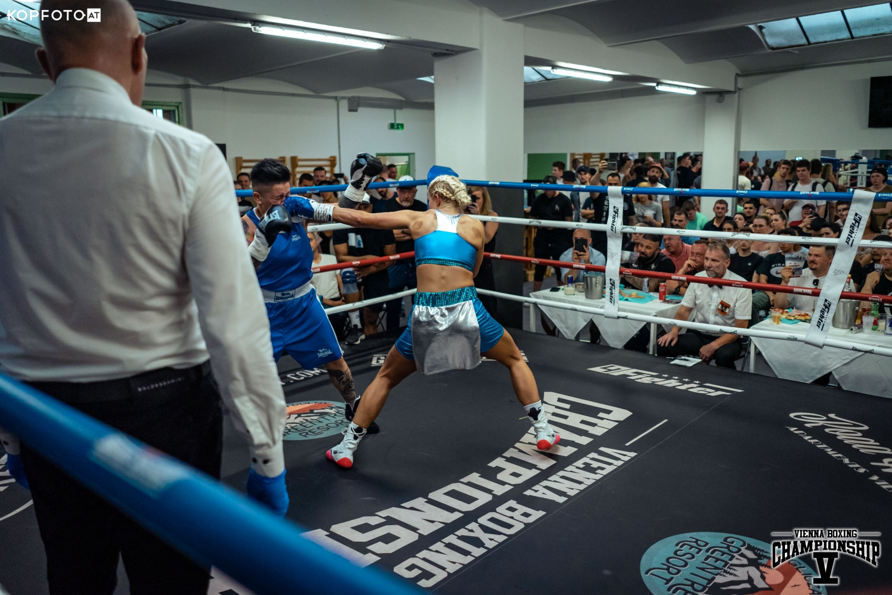 Bei den Pros startete dann Christine Pöppelmayer aus der Boxschmiede Wien gegen Nikolett Szabo. Klare Angelegenheit für die Deutsche, sie gewinnt durch TKO. Im zweiten Frauenkampf des Abends siegt die wunderbare Melina Maibaum. Sie überzeugte durch klasse Übersicht und einen technisch einwandfreien Stil. Sie ließ der Ungarin Andrea Jenei nicht den Hauch einer Chance. Das deutsche Schwergewicht und ehemaliger Bayernmeister der Amateure Tom Manzau, stoppt Filip Dacevac brutal in Runde 2. Tom wird bei der nächsten Championship im September ebenfalls wieder am Start sein.