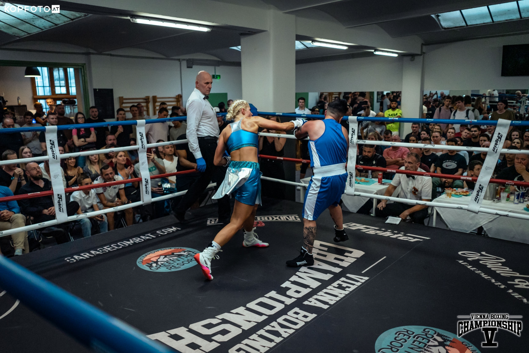 Bei den Pros startete dann Christine Pöppelmayer aus der Boxschmiede Wien gegen Nikolett Szabo. Klare Angelegenheit für die Deutsche, sie gewinnt durch TKO. Im zweiten Frauenkampf des Abends siegt die wunderbare Melina Maibaum. Sie überzeugte durch klasse Übersicht und einen technisch einwandfreien Stil. Sie ließ der Ungarin Andrea Jenei nicht den Hauch einer Chance. Das deutsche Schwergewicht und ehemaliger Bayernmeister der Amateure Tom Manzau, stoppt Filip Dacevac brutal in Runde 2. Tom wird bei der nächsten Championship im September ebenfalls wieder am Start sein.