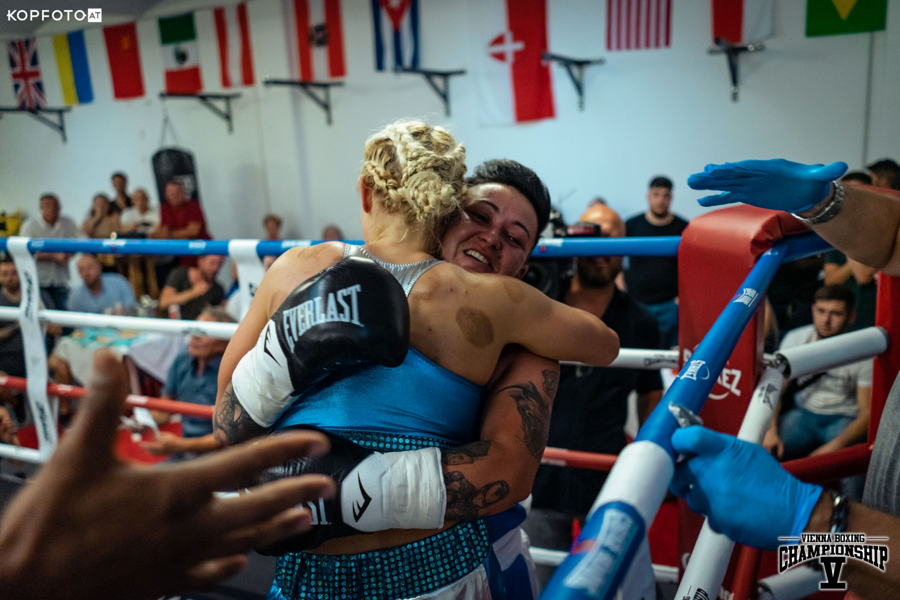 Bei den Pros startete dann Christine Pöppelmayer aus der Boxschmiede Wien gegen Nikolett Szabo. Klare Angelegenheit für die Deutsche, sie gewinnt durch TKO. Im zweiten Frauenkampf des Abends siegt die wunderbare Melina Maibaum. Sie überzeugte durch klasse Übersicht und einen technisch einwandfreien Stil. Sie ließ der Ungarin Andrea Jenei nicht den Hauch einer Chance. Das deutsche Schwergewicht und ehemaliger Bayernmeister der Amateure Tom Manzau, stoppt Filip Dacevac brutal in Runde 2. Tom wird bei der nächsten Championship im September ebenfalls wieder am Start sein.