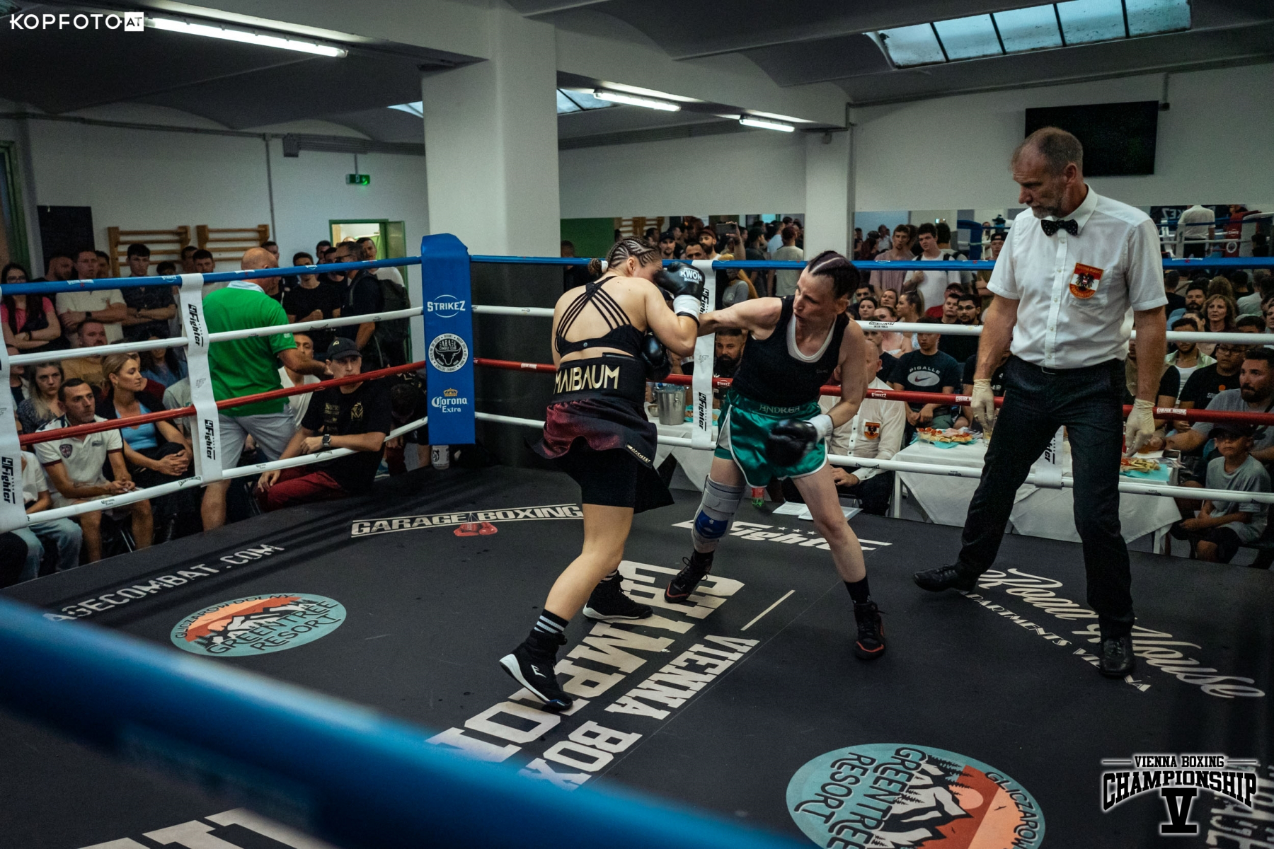 Bei den Pros startete dann Christine Pöppelmayer aus der Boxschmiede Wien gegen Nikolett Szabo. Klare Angelegenheit für die Deutsche, sie gewinnt durch TKO. Im zweiten Frauenkampf des Abends siegt die wunderbare Melina Maibaum. Sie überzeugte durch klasse Übersicht und einen technisch einwandfreien Stil. Sie ließ der Ungarin Andrea Jenei nicht den Hauch einer Chance. Das deutsche Schwergewicht und ehemaliger Bayernmeister der Amateure Tom Manzau, stoppt Filip Dacevac brutal in Runde 2. Tom wird bei der nächsten Championship im September ebenfalls wieder am Start sein.
