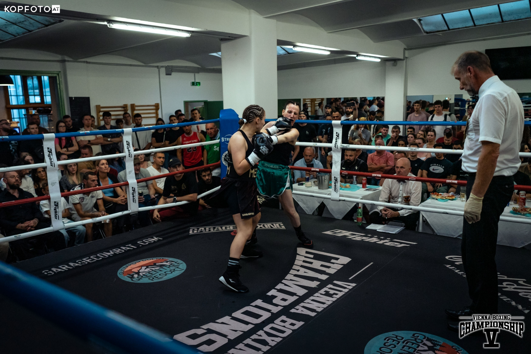 Bei den Pros startete dann Christine Pöppelmayer aus der Boxschmiede Wien gegen Nikolett Szabo. Klare Angelegenheit für die Deutsche, sie gewinnt durch TKO. Im zweiten Frauenkampf des Abends siegt die wunderbare Melina Maibaum. Sie überzeugte durch klasse Übersicht und einen technisch einwandfreien Stil. Sie ließ der Ungarin Andrea Jenei nicht den Hauch einer Chance. Das deutsche Schwergewicht und ehemaliger Bayernmeister der Amateure Tom Manzau, stoppt Filip Dacevac brutal in Runde 2. Tom wird bei der nächsten Championship im September ebenfalls wieder am Start sein.