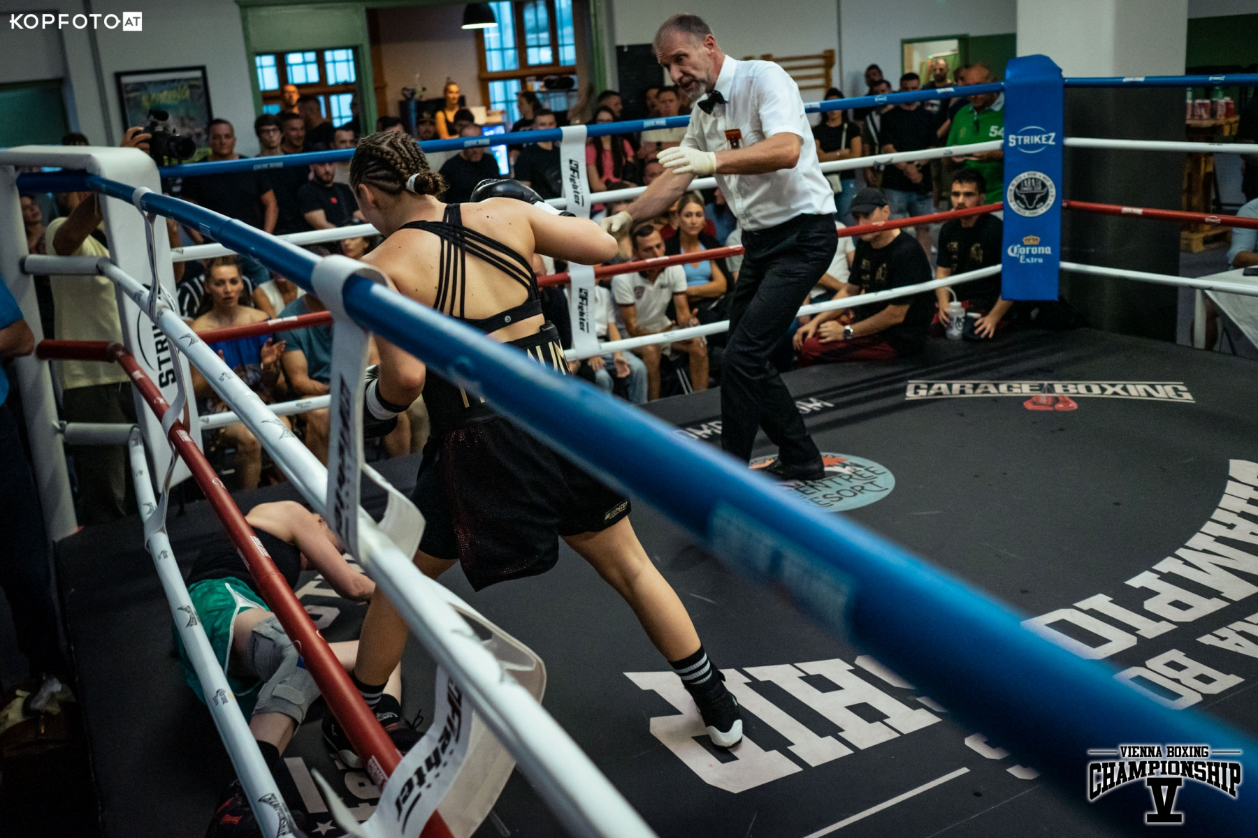 Bei den Pros startete dann Christine Pöppelmayer aus der Boxschmiede Wien gegen Nikolett Szabo. Klare Angelegenheit für die Deutsche, sie gewinnt durch TKO. Im zweiten Frauenkampf des Abends siegt die wunderbare Melina Maibaum. Sie überzeugte durch klasse Übersicht und einen technisch einwandfreien Stil. Sie ließ der Ungarin Andrea Jenei nicht den Hauch einer Chance. Das deutsche Schwergewicht und ehemaliger Bayernmeister der Amateure Tom Manzau, stoppt Filip Dacevac brutal in Runde 2. Tom wird bei der nächsten Championship im September ebenfalls wieder am Start sein.
