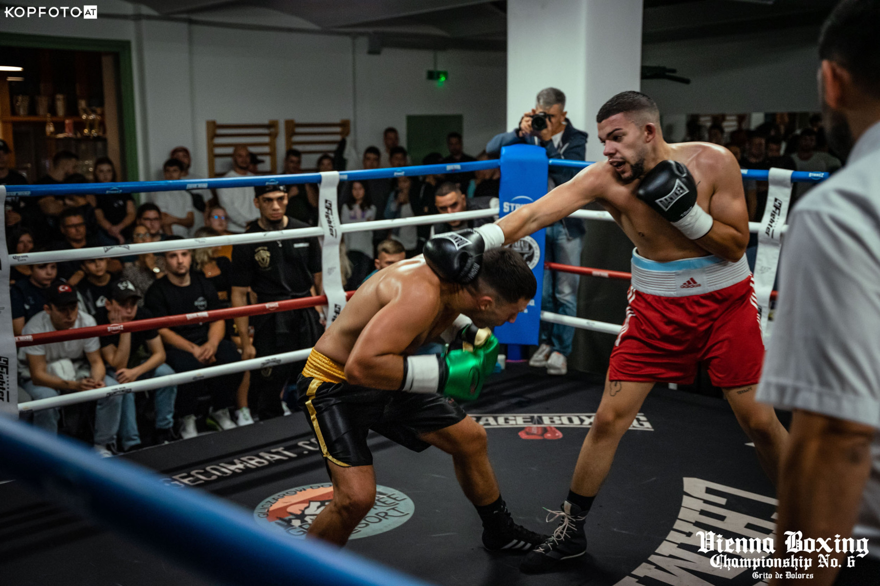 Langsam neigt sich der Sommer dem Ende zu und es war mal wieder Zeit für unsere Vienna Boxing Championship, der einzigartigen Boxveranstaltung im Herzen von Wien. Den Auftakt machte unser Debutant David Obradovic. Er erwischte mit Mohamed Reza aus dem Box Team Hu einen extrem starken Mann. Nach einem heftigen Schlagabtausch ging David zu Boden, bei 8ter Count konnte er sich wieder erfangen aber der Referee beendete den Kampf umgehend.