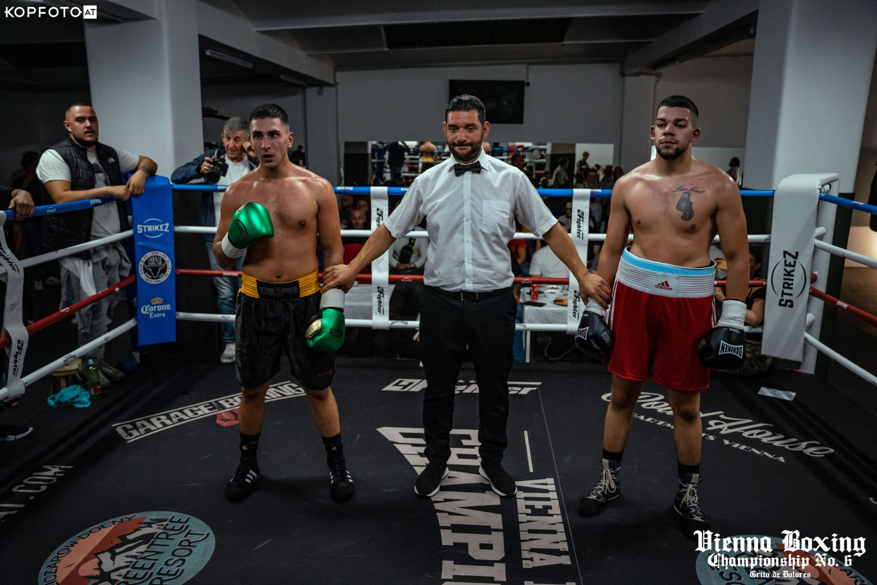 Den spektakulärsten Kampf lieferten sich dieses Mal Luka „The Butcher“ Filka und Pro Debutant Arash Khojasteh. Der Austro Iranier ist 32 Jahre alt und kommt aus Linz. Er selbst hatte noch am Vorabend bei der Cage Fight Series im Käfig gestanden. Arash begann äußerst gut und bewegte sich wie ein Panther. Immer wieder kam er mit dem Jab durch und konnte Filka auf Distanz halten. Der wiederum blockte die Schläge teilweise mit dem Kopf ab. „The Butcher“ zeigte sich immer wieder gefährlich mit unorthodoxen Haken. Aber erst ab der vierten Runde konnte er richtige Treffer landen, als er mehr den Körper anvisierte. Im Endeffekt konnte sich Neo Österreicher Arash den Sieg durch eine disziplinierte und clevere Leistung sichern.