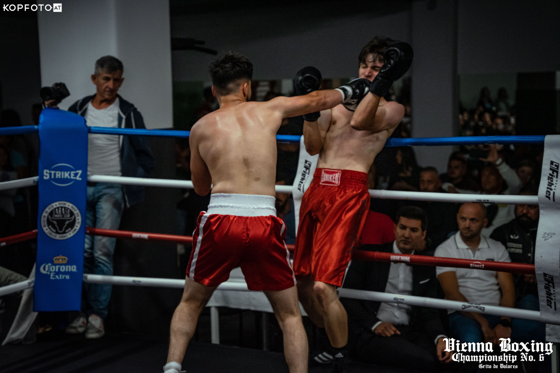 Langsam neigt sich der Sommer dem Ende zu und es war mal wieder Zeit für unsere Vienna Boxing Championship, der einzigartigen Boxveranstaltung im Herzen von Wien. Den Auftakt machte unser Debutant David Obradovic. Er erwischte mit Mohamed Reza aus dem Box Team Hu einen extrem starken Mann. Nach einem heftigen Schlagabtausch ging David zu Boden, bei 8ter Count konnte er sich wieder erfangen aber der Referee beendete den Kampf umgehend.