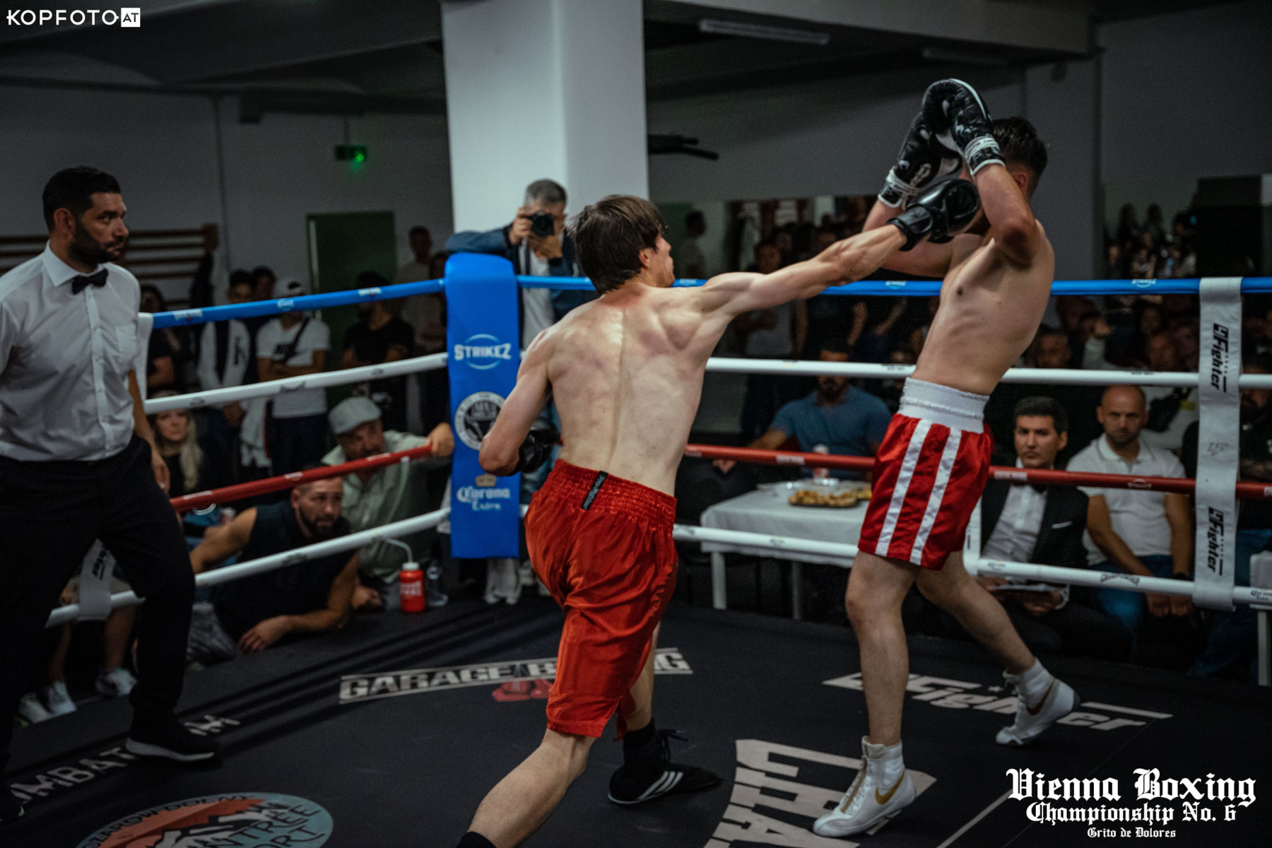 Langsam neigt sich der Sommer dem Ende zu und es war mal wieder Zeit für unsere Vienna Boxing Championship, der einzigartigen Boxveranstaltung im Herzen von Wien. Den Auftakt machte unser Debutant David Obradovic. Er erwischte mit Mohamed Reza aus dem Box Team Hu einen extrem starken Mann. Nach einem heftigen Schlagabtausch ging David zu Boden, bei 8ter Count konnte er sich wieder erfangen aber der Referee beendete den Kampf umgehend.