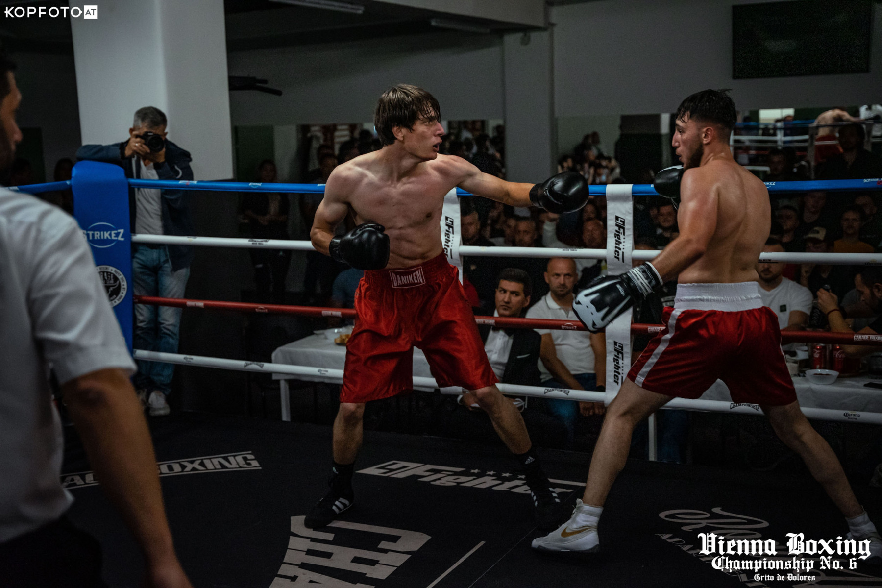 Langsam neigt sich der Sommer dem Ende zu und es war mal wieder Zeit für unsere Vienna Boxing Championship, der einzigartigen Boxveranstaltung im Herzen von Wien. Den Auftakt machte unser Debutant David Obradovic. Er erwischte mit Mohamed Reza aus dem Box Team Hu einen extrem starken Mann. Nach einem heftigen Schlagabtausch ging David zu Boden, bei 8ter Count konnte er sich wieder erfangen aber der Referee beendete den Kampf umgehend.
