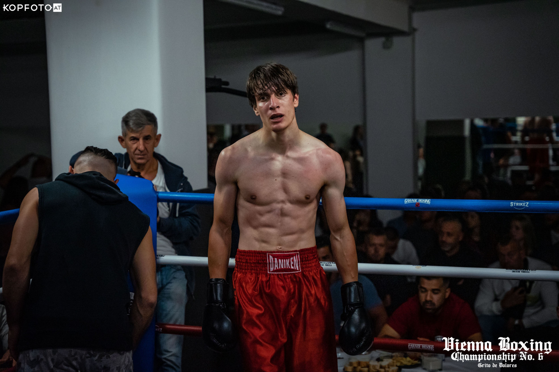 Langsam neigt sich der Sommer dem Ende zu und es war mal wieder Zeit für unsere Vienna Boxing Championship, der einzigartigen Boxveranstaltung im Herzen von Wien. Den Auftakt machte unser Debutant David Obradovic. Er erwischte mit Mohamed Reza aus dem Box Team Hu einen extrem starken Mann. Nach einem heftigen Schlagabtausch ging David zu Boden, bei 8ter Count konnte er sich wieder erfangen aber der Referee beendete den Kampf umgehend.