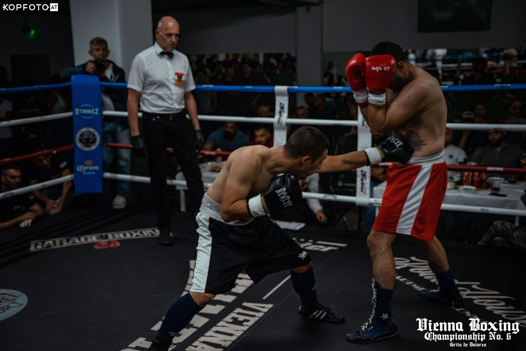 Langsam neigt sich der Sommer dem Ende zu und es war mal wieder Zeit für unsere Vienna Boxing Championship, der einzigartigen Boxveranstaltung im Herzen von Wien. Den Auftakt machte unser Debutant David Obradovic. Er erwischte mit Mohamed Reza aus dem Box Team Hu einen extrem starken Mann. Nach einem heftigen Schlagabtausch ging David zu Boden, bei 8ter Count konnte er sich wieder erfangen aber der Referee beendete den Kampf umgehend.