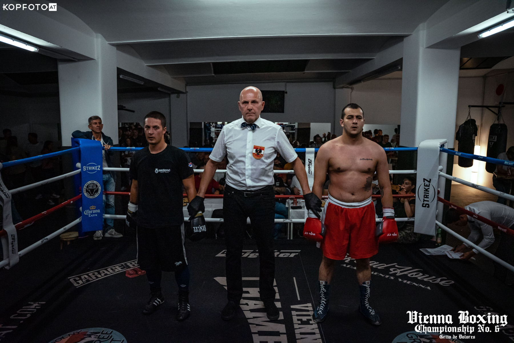 Langsam neigt sich der Sommer dem Ende zu und es war mal wieder Zeit für unsere Vienna Boxing Championship, der einzigartigen Boxveranstaltung im Herzen von Wien. Den Auftakt machte unser Debutant David Obradovic. Er erwischte mit Mohamed Reza aus dem Box Team Hu einen extrem starken Mann. Nach einem heftigen Schlagabtausch ging David zu Boden, bei 8ter Count konnte er sich wieder erfangen aber der Referee beendete den Kampf umgehend.