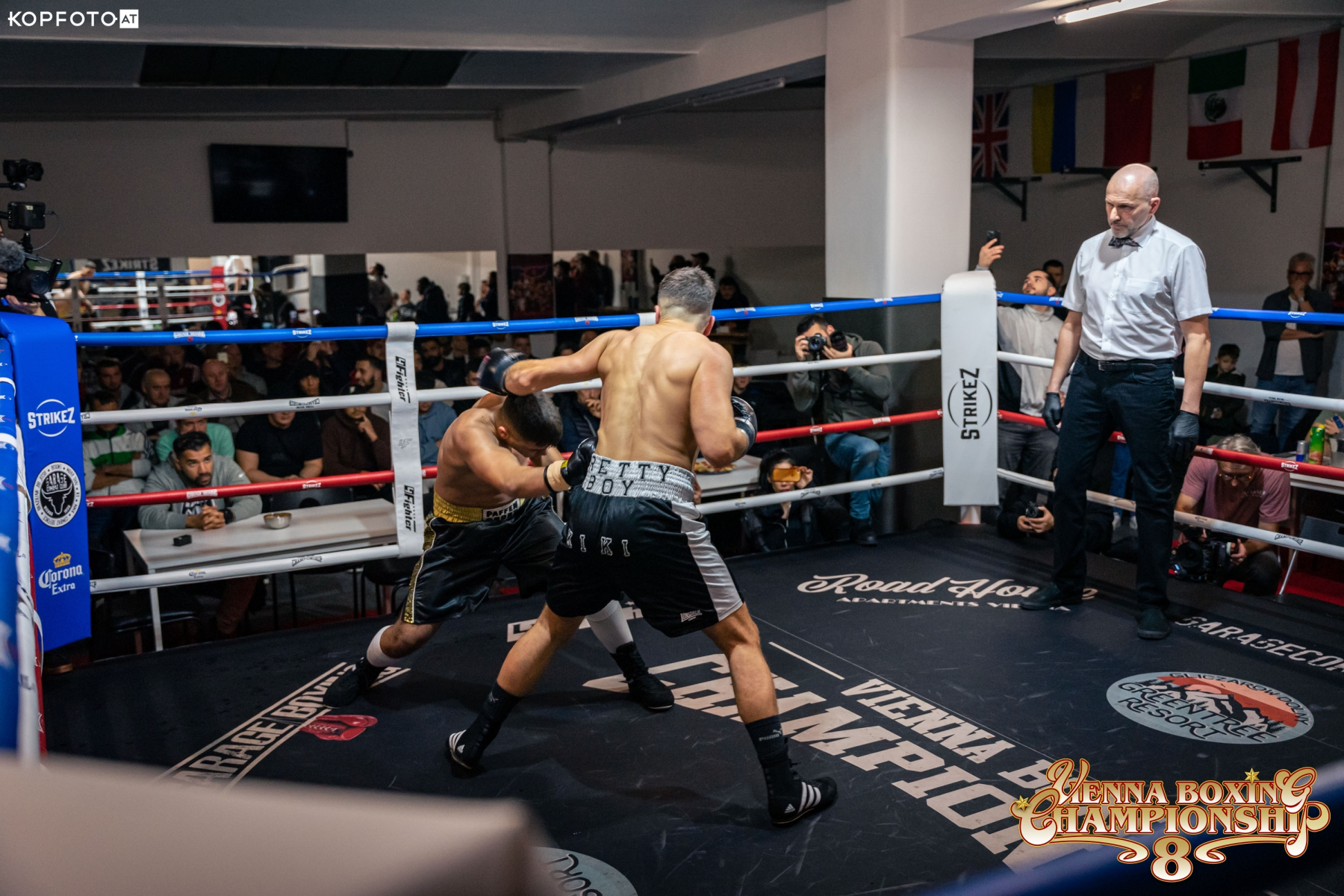 Den Anfang bei den Aspiranten machten unser Ibrahim Brückl gegen Italo Bomber Matteo Giraldi. Nachdem Unentschieden im Oktober brannten nun beide auf Sieg. Leider erwischte Giraldi den besseren Tag und konnte sich via PTS durchsetzen.Kristijan Kuzmanovic stoppte Dusan Dimic schon frühzeitig. Er schließt sich 2023 der Profi Abteilung desTeam GC an.